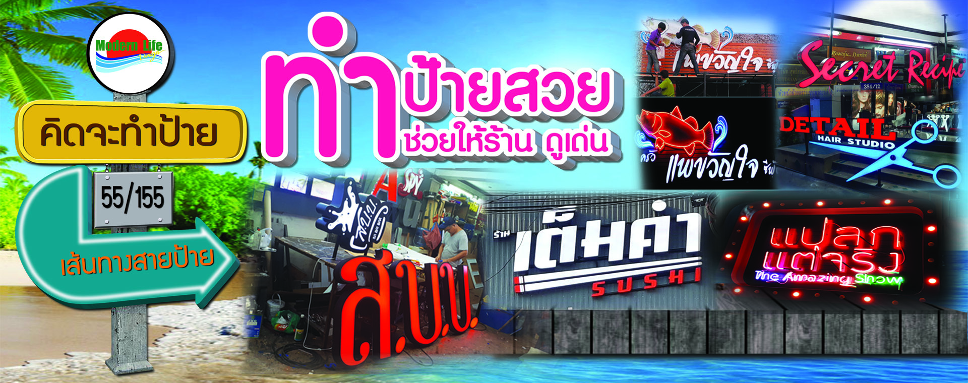 ด้วยใจรัก ในสายวิชาชีพ ภายใต้ สโลแกนที่ว่า "ป้ายสวย ดูงาม ตามสมัย" ที่เราพร้อมนำเสนอ แบบป้ายต่างๆ มากมาย เราเน้นคุณภาพงานยังเป็นที่จดจำกันได้นาน หลังจากที่ลืมราคา กันไปแล้ว เพราะการทำป้ายสวยๆ จะช่วยให้ร้านดูเด่น สะดุดตา แก่ผู้สัญจร หรือ ลูกค้า ที่ผ่านมาใช้บริการ สร้าง ความจดจำได้ง่าย ยังบ่งบอกถึง ความพิถีพิถัน ใส่ใจในรายละเอียด ของ เจ้าของกิจการนั้นๆ ได้เป็นอย่างดี จากประสบการณ์ ที่สั่งสมมา พร้อมแบบป้าย ที่นำสมัย และ ทีมช่างศิลป์ ของเรา เราหวังว่า จะได้รับโอกาส และ เป็นทางเลือกหนึ่ง ในการตัดสินใจ นะครับ